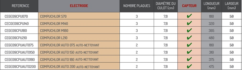 • Remplacement des électrodes en grilles par des électrodes en plaques, ces dernières étant plus adaptées pour les appareils avec fonction d’auto nettoyage. Elles présentent par ailleurs l’avantage d’améliorer la durée de vie de la cellule.