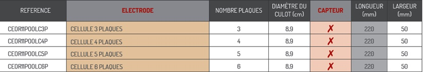 • Remplacement des électrodes en grilles par des électrodes en plaques, ces dernières étant plus adaptées pour les appareils avec fonction d’auto nettoyage. Elles présentent par ailleurs l’avantage d’améliorer la durée de vie de la cellule.